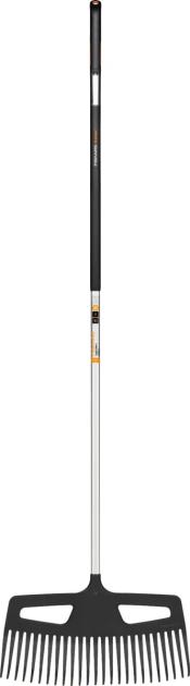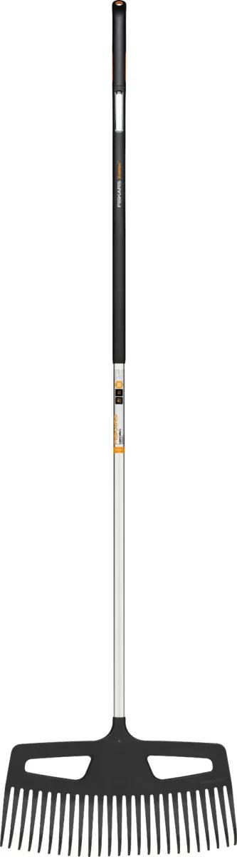 Široke grablje s fleksibilnim prstima za učinkovito grabljanje lišća na velikim površinama. Izdržljiva, a opet lagana ručka od kaljenog aluminija za jednostavno čišćenje vrta. Ručka s udobnom Softgrip™ površinom na rukohvatu. Praktična rupa za pohranu.