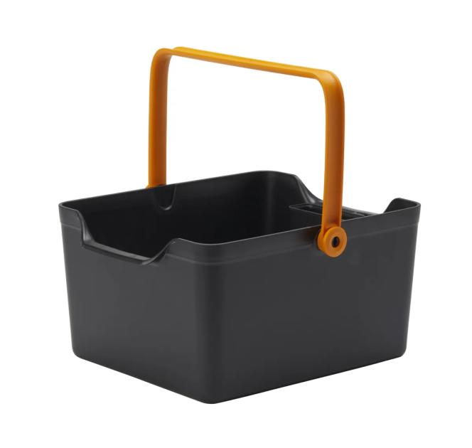 Fiskars kutija za uredno spremanje vrtnog alata i njegov transport iz zatvorenog prostora na otvoreni. Tijelo je izrađeno od izdržljive plastike s 20% udjela reciklirane plastike. Prostrana kutija također uključuje uklonjivu košaru s rupama koje se mogu objesiti na stijenke kutije. Košara je idealna za spremanje škara, škara za rezanje i ostalog malog alata. Ručka je zaključana u gornjem položaju kada se nosi jednom rukom ili se bočne ručke mogu koristiti kada se nosi s obje ruke. Kutija ima prikladne dimenzije za spremanje u standardne ormariće i ormariće. Ako kutiju ostavljamo vani, preporučujemo da je postavite na natkriveno mjesto, zaštićeno od izravne sunčeve svjetlosti i vremenskih uvjeta.