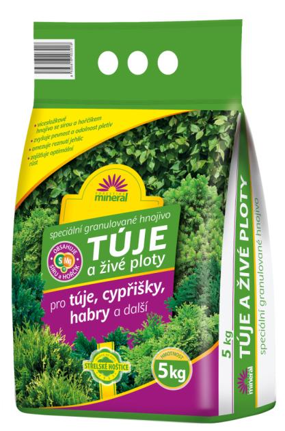 Gnojivo za tuje i živice je posebna mješavina granuliranog višekomponentnog NPK gnojiva s magnezijem i sumporom. Gnojivo je pogodno za prihranjivanje živih ograda od tuja, čempresa, graba itd.