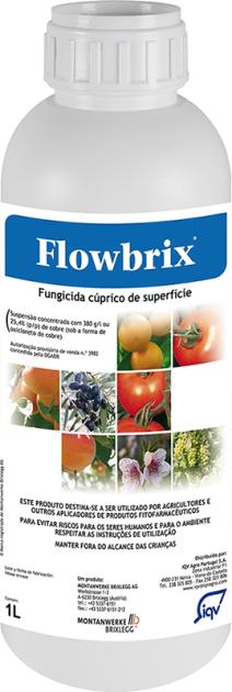 Flowbrix je folijarni fungicid protektivnog djelovanja. Ima kontaktno djelovanje protiv gljivičnih i bakterijskih bolesti. Pripravak Flowbrix na površini tretiranih biljaka stvara fini film koji apsorbiraju hife i spore gljivice. Pripravak remeti enzimski sustav patogenih organizama. Flowbrix također ima nuspojave na druge bolesti vinove loze: crvenu lozu, crnu pjegavost i crnu trulež.