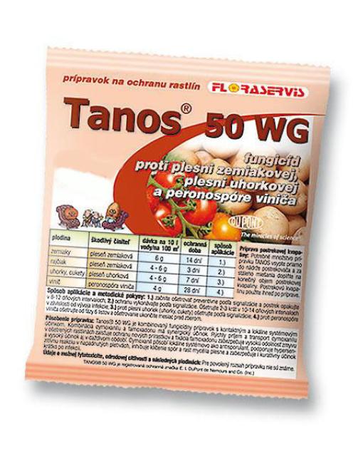 Suvremeni kombinirani dvokomponentni fungicid za zaštitu krumpira od plamenjače i alternarne pjegavosti lišća krumpira, rajčice protiv plamenjače krumpira, krastavaca i tikvica od plamenjače krastavaca i vinove loze protiv plamenjače. Tanos 50WG je kombinirani dvokomponentni fungicid, namijenjen za zaštitu krumpira od plamenjače i alternarne pjegavosti lišća krumpira, rajčice protiv plamenjače krumpira, krastavaca i tikvica od plamenjače krastavaca i vinove loze protiv plamenjače. Obje djelatne tvari pripravka nadopunjuju se djelotvornošću u različitim točkama razvojnog ciklusa plijesni. Najveću učinkovitost i odgovor ima preventivna primjena ili primjena na početku zaraze biljaka. Osim toga, preventivno tretirane sastojine dugoročno su zaštićene od daljnjih infekcija. Tanos 50WG vrlo je otporan na ispiranje kišom zahvaljujući čvrstoj fiksaciji famoksata i lokalno-sistemskoj distribuciji cimoksanila.
