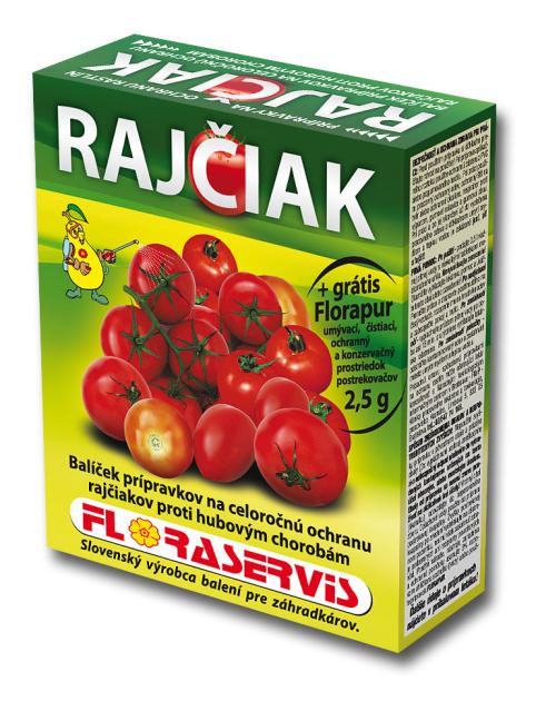 Paket pripravaka za cjelogodišnju zaštitu rajčice od gljivičnih bolesti. Pakiranje sadrži tri sredstva podijeljena u četiri prskanja za zaštitu rajčice od: