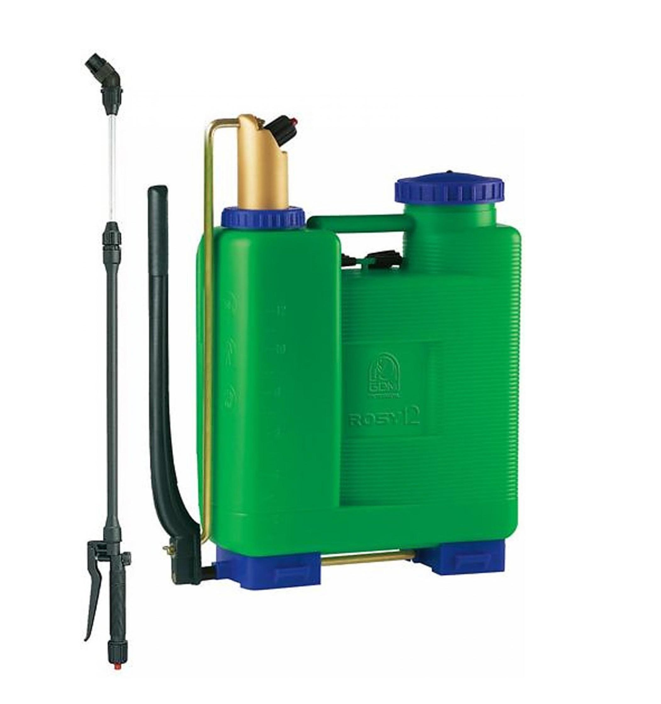 Prskalica zapremine 12 L profesionalne kvalitete. Pogodan za veće površine. Ugodan pritisak kada visi na leđima. Oprema uključuje produžni teleskopski nastavak s maks. Nastavak 110 cm i dvije krajnje mlaznice, ravna i konusna. Budući da je napravljen od plastike, vrlo je lagan. Pogodno za dešnjake i ljevoruke osobe. Tlači se pumpanjem poluga bez potrebe skidanja prskalice sa stražnje strane.