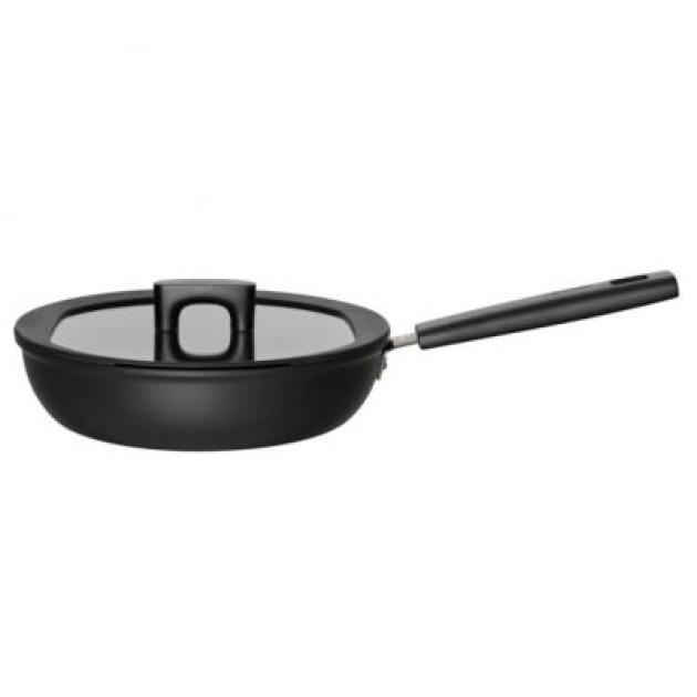 Fiskars aluminijska posuda za zahtjevnu pripremu hrane. Neprianjajuća svojstva, najbolja Hardtec Superior površina, sigurna ručka od bakelita, jače dno za uštedu energije, moderan crni dizajn.