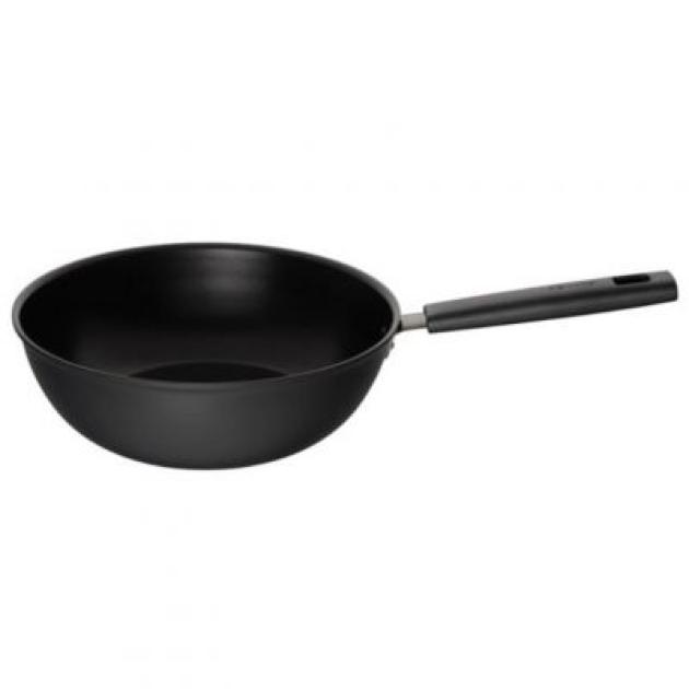 Fiskars aluminijska tava za wok za zahtjevne zadatke. Neprianjajuća svojstva, najbolja Hardtec Superior površina, sigurna ručka od bakelita, jače dno za uštedu energije, moderan crni dizajn.