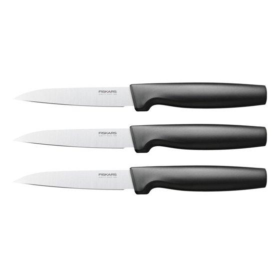 Fiskars Functional Form™ set univerzalnih noževa s dugom oštricom od 110 mm sadrži 3 noža koji su jednostavni za korištenje i održavanje u kuhinji. Idealne su za guljenje i rezanje voća ili povrća ili druge hrane.