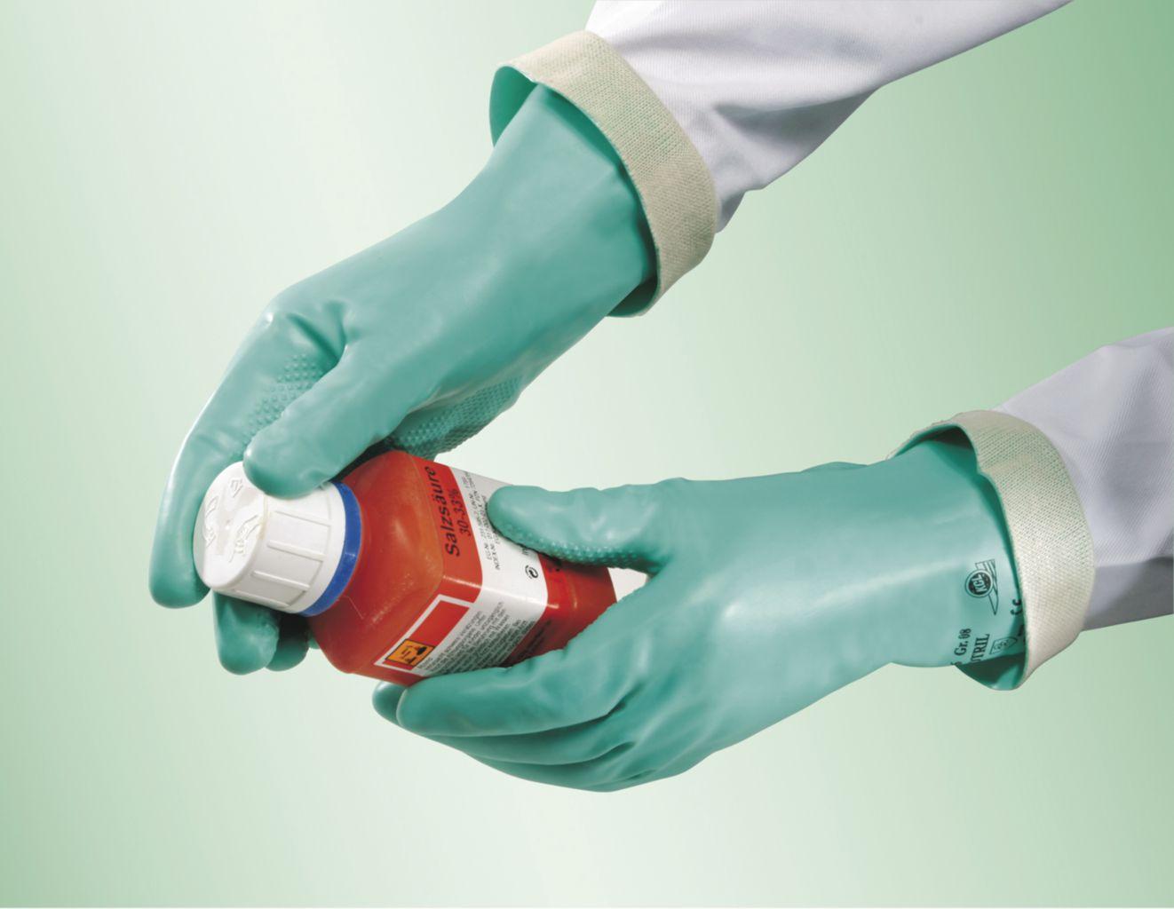 - Ove kvalitetne antikemijske rukavice AJKLOPT otporne su na širok raspon kemikalija i imaju odličnu sposobnost rukovanja s masnim, mokrim predmetima i osjetljive su na kožu. Rukavice nude maksimalnu moguću izdržljivost protiv mehaničke abrazije.